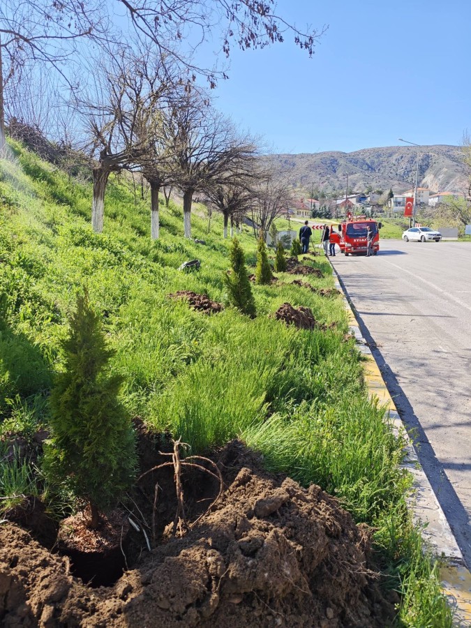 İLÇE GİRİŞ MEVKİİNDE AĞAÇLANDIRMA ÇALIŞMASI GERÇEKLEŞTİRİLDİ